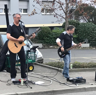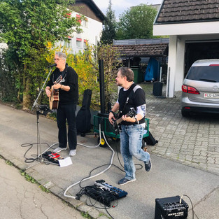 Der nächste Standort war etwas verwirrend auf unserem Plan eingetragen, darum haben wir - zusammen mit den beiden Feuerwehr-Freiwilligen - beschlossen, einfach zwei Konzerte daraus zu machen, statt nur eines. Auch hier wieder, volle Balkone, glückliche Gesichter und unser Versprechen, nächstes Jahr bei einem allfälligen Quartierfest vorbei zu kommen.